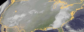 Auf dem Satellitenbild der Vereinigten Staaten von Amerika sind über dem Osten vielfach dichte Wolken zu sehen, die in weiten Teilen teils andauernden Regen bringen. Auch von Kalifornien und weiter nach Osten ins Landesinnere zeigt sich teils dichtere Bewölkung und gebietsweise fällt dabei Regen. Nach Nordwesten ist es dagegen meist freundlich und trocken.