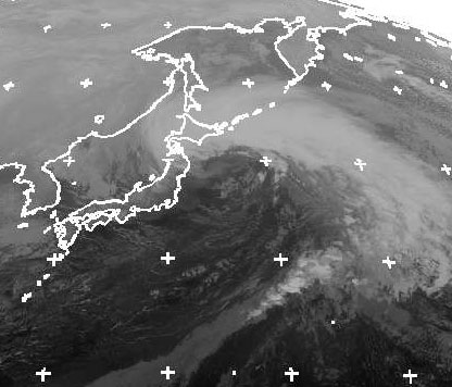 Ein Sturmtief bei Hokkaido betsimmt das Wetter in Japan. Die dichtesten Wolken liegen, abgesehen vom Norden der Inseln, bereits auf dem Pazifik. Auf ihrer Rückseite strömt mit einem kräftigen Wind von Norden aber Schauerbewölkung heran. Es kommt zu Regenschauern, zunehmend aber auch zu Schneeschauern. (Bildquelle: NERC Satellite Receiving Station, Dundee University, Scotland, http://www.sat.dundee.ac.uk/)