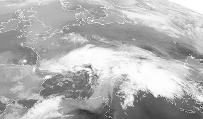 Auf dem Satellitenbild vom Freitagmorgen sind Wolken von Tief 'Bernd' mit Zentrum über den westlichen Alpen zu erkennen, sie reichen von den Pyrenäen bis nach Südosteuropa. Vor allem in Italien sowie in den Alpenländern bringt das Tief zum Teil kräftige Niederschläge, in Deutschland fallen nur im Süden Schauer. Von den Britischen Inseln über Deutschland bis nach Polen bestimmt Hochdruckeinfluss das Wetter und sorgt hier für fast wolkenlosen Himmel.