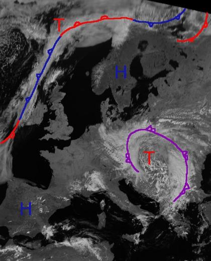 Hoch 'Zsusanna' über Skandinavien sorgt für wolkenarmes Wetter von Russland bis zu den Britischen Inseln und bis zum westlichen Mittelmeer. Dagegen bringt Tief 'Hajo' über Südosteuropa viele Wolken, hier kommt es häufig zu Schauern oder Gewittern. Ein Teil der Wolken hat von Osten auch Deutschland erfasst. 'Hajo' bleibt in den nächsten Tagen über Südosteuropa liegen und schickt seine Wolken von Südosten weiterhin auch immer wieder nach Deutschland hinein.