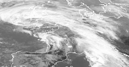 Das Zentrum von Tief 'Heike' liegt heute über den Britischen Inseln. Das Wolkenband seines Frontensystems erstreckt sich jedoch über Westdeutschland bis´nach Norditalien. Es zieht mit seinem Regen über Deutschland weiter nach Nordosten. Auf seiner Rückseite erkennt man über Frankreich aufgelockerte Bewölkung, aber auch Schauer.