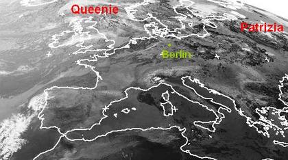 Vor allem über dem Mittelmeerraum sorgt schwacher Hochdruckeinfluss für wolkenarmen Himmel, weiter nördlich ist es unbeständiger, hier haben sich mehrere Quellwolken entwickelt, in den Alpenländern kann es auch Gewitter geben. Tiefdruckgebiete ziehen von Schottland über Skandinavien bis nach Nordrussland und bringen dort häufig Regen. (Bildquelle: NERC Satellite Receiving Station, Dundee University, Scotland, http://www.sat.dundee.ac.uk/)