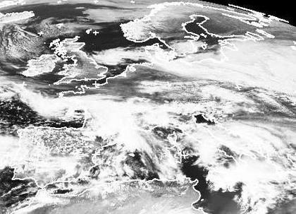Während Tiefdruckgebiete über Südeuropa für wolkenreiches Wetter sorgen, erstreckt sich von den Britischen Inseln bis nach Skandinavien ein Hoch. In seinem Einflussbereich ist es vielerorts nur locker bewölkt. Jedoch hat sich ein Tiefausläufer eines Tiefs über Osteuropa bis nach Dänemark und Norddeutschland vorgeschoben. Die dichten Wolken reichen bis auf die Nordsee. (Bildquelle: NERC Satellite Receiving Station, Dundee University, Scotland, http://www.sat.dundee.ac.uk/)