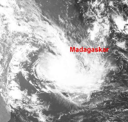 Über Madagaskar liegt am Dienstag Mittag der Tropensturm '09S'. Seine Windgeschwindigkeit liegt derzeit bei 65 km/h im Mittel und 85 km/h in Spitzenböen. Die vielen Wolken bringen teils kräftigen Regen. Der Tropensturm wird nun langsam nach Norden weiterziehen und sich dabei verstärken.(Bildquelle: NERC Satellite Receiving Station, Dundee University, Scotland, http://www.sat.dundee.ac.uk/)
