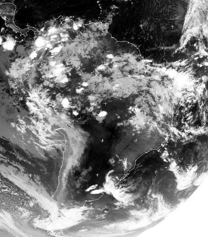 In der Nordhälfte Südamerikas findet man die Bewölkung tropischer Schauer und Gewitter. Auch um Buenos Aires und im südlichen Uruguay liegen die Reste von Gewitterwolken. Meist ist es im Süden aber freundlich und wolkenarm. An der Westküste von Südchile liegt jedoch ein Tief, das an die Westseite der Anden kräftigen Regen bringt. Auch nach Argentinien bringt es viele Wolken. Dort kommt es auch zu stürmischem Wind. (Bildquelle: NERC Satellite Receiving Station, Dundee University, Scotland, http://www.sat.dundee.ac.uk/)