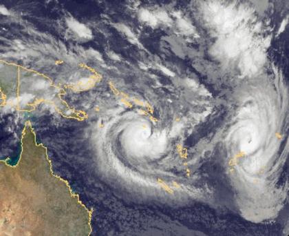 Die beiden tropischen Stürme östlich von Australien haben deutlich an Intensität gewonnen. In dem westlicheren Sturm, 'Ului' genannt, werden Windgeschwindigkeiten von 260 km/h erreicht, in dem östlicheren Sturm, 'Thomas' genannt, noch 180 km/h. Beide Stürme werden sich in den nächsten Tagen abschwächen.