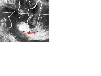 Der tropische Wirbelsturm 'Jokwe' befindet sich zurzeit südwestlich von Madagaskar, sorgt aber in den südlichen Landesteilen noch für Sturm. Zurzeit erreicht er mittlere Windgeschwindigkeiten von 130, in Böen 148 km/h. Berechnungen zufolge soll sich 'Jokwe' weiter abschwächen und sich langsam Richtung Westen verlagern. Dabei nähert er sich der Südostküste von Mosambik. (Bildquelle: NERC Satellite Receiving Station, Dundee University, Scotland, http://www.sat.dundee.ac.uk/)