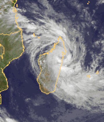 Der Zyklon 'Jade' erreichte in Böen bisher bis zu 150 km/h. Derzeit liegt er jedoch mit seinem Zentrum über dem Nordosten der Insel Madagaskar, sodass er sich deutlich abgeschwächt hat. Voraussichtlich zieht er nun über dem Land südwärts. Er bringt dabei noch kräftige Regenfälle. Eine Verlagerung nach Osten über das Meer ist jedoch nicht ausgeschlossen, sodass auch wieder eine erneute Verstärkung möglich wäre.