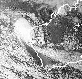 Der Zyklon 'Nicholas' liegt an der australischen Westküste und sorgt für teils ergiebige Niederschläge und Sturm, er erreicht mittlere Windgeschwindigkeiten bis 100 km/h und in Böen bis zu 130 km/h. Er zieht langsam weiter nach Süden und schwächt sich dabei weiter ab.
