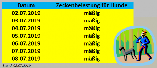 Unsere Hundezeckenprognose bis zum 08.07.2019