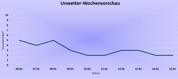 Die Risiken durch das Wetter bleiben in der Woche besonders an den ersten drei Tagen noch oft mäßig und regional erhöht. Zum Wochenstart erwarten wir vor allem im Norden, Osten und über Bayern gebietsweise Schneefall mit einhergehender Glättegefahr. Am Dienstag ist es insgesamt etwas entspannter, jedoch ist hier im Westen und Südwesten zum Teil überfrierende Nässe möglich. Am Mittwoch fällt dann in den besagten Regionen neben Regen und Schneeregen auch zum Teil Schnee. Ab Donnerstag geht es dann insgesamt deutlich entspannter weiter, da es dann zwar weiterhin kühl, jedoch überwiegend auch trocken bleibt.