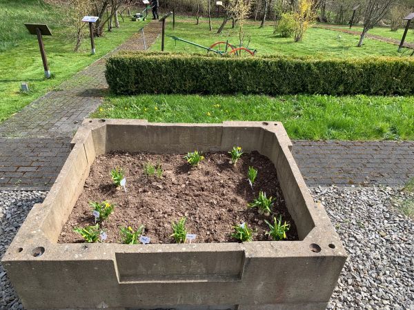 Nach einer kindgerechten Führung durch das Parkgelände durften die Kindergartenkinder zum krönenden Abschluss je eine eigen Narzisse in ein eigens für sie vorgesehenes Hochbeet pflanzen. So sollen bereits die Kleinen ein Gefühl für Natur und Wachstum bekommen.
