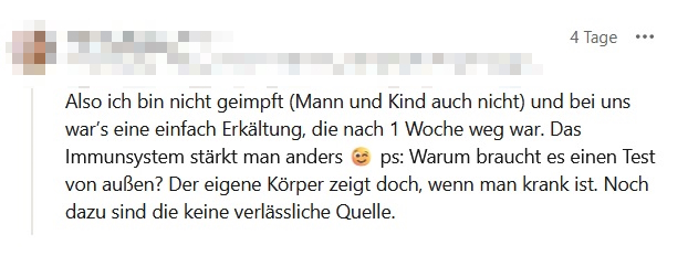 Es lässt sich kaum von der Hand weisen, so liest es sich auch in den Kommentaren des aktuellen Falls, dass die Corona-Pandemie tiefe Krater der Verunsicherung in den Köpfen mancher hinterlassen bzw. sie noch weiter vertieft hat. Als würden schlecht verheilte Corona-Wunden durch Impfposts wieder aufgerissen.