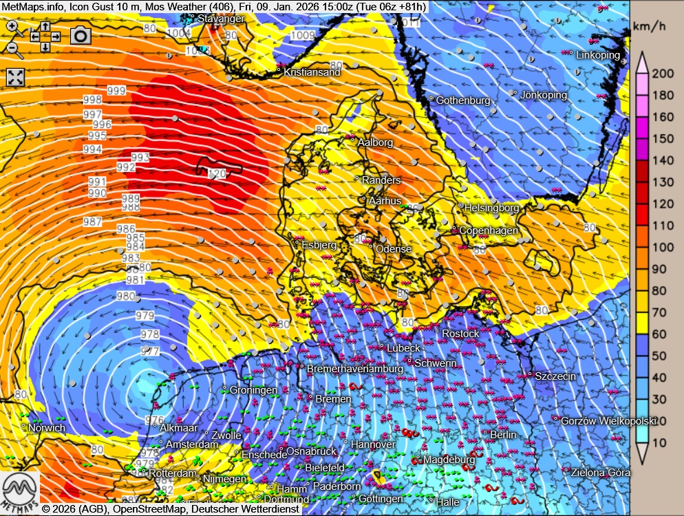 Zu erwarten ist dabei eine Kombination aus starkem Schneefall und Glätte, (schweren) Sturmböen und lokal teils erheblichen Verwehungen, die vor allem im Norden und Osten Deutschlands und in den Mittelgebirgen zu massiven Einschränkungen im Straßen-, Schienen- und Luftverkehr führen werden.