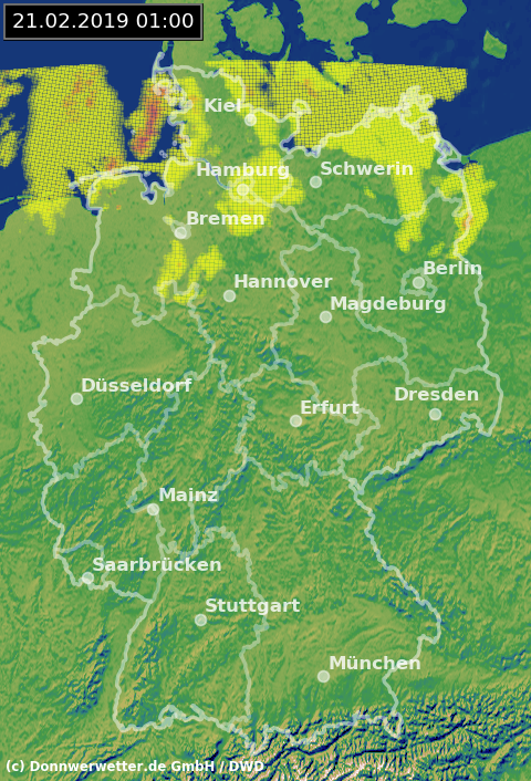 Radarbild von Donnerstag, 21.02.2019 um 01.00 Uhr