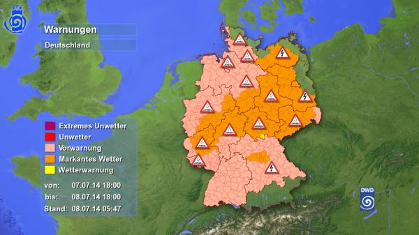 Lananhaltender Starkregen in Deutschland. Besonders den Westen und Süden trifft es. Bis Mittwoch 18 Uhr besteht Gefahr. Im Westen und in der Mitte können 40 bis 60 L/m2 in 24 Stunden fallen. Lokal sind noch höhere Regenmengen zu erwarten. Folge können Hangrutschungen, lokale Überflutungen und unterspülte Straßen sein.