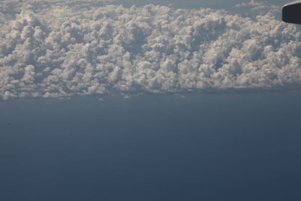 Blick vom Schwarzen Meer auf die Landmassen tagsüber. Über dem Meer ist es meist wolkenfrei, über dem Land türmen sich tagsüber die Quellwolken.
