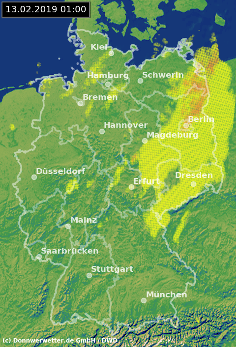 Radarbild von Mittwoch, 13.02.2019 um 01.00 Uhr