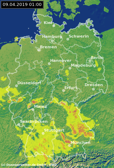 Radarbild von Dienstag, 09.04.2019 um 01.00 Uhr
