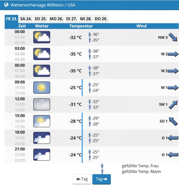 Betroffen von der Extremkälte ist vor allem der Norden und mittlere Westen der USA. Doch auch im normalerweise milden, teils subtropisch geprägten Süden des Landes werden Temperaturen von teils -15 Grsd erwartet.Laut des staatlichen Wetterdienstes ist die Temperatur in einigen Regionen in ein einer halben Stunden um über 20 Grad gefallen.