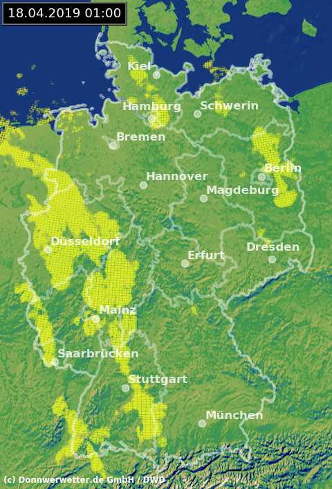 Radarbild von Donnerstag, 18.04.2019 um 01.00 Uhr