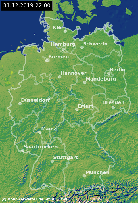 Radarbild von Mittwoch, 31.12.2019 um 22.00 Uhr