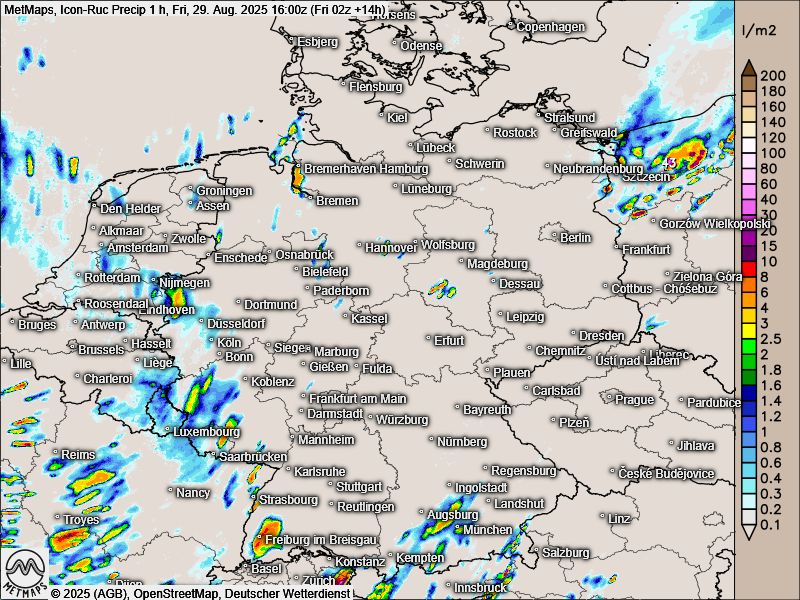 Der ehemalige Wirbelsturm "Erin" begleitet uns als steuerndes Tiefdruckgebiet auch ins Wochenende. Heute sind am Nachmittag einzelne Schauer und Gewitter unterwegs: