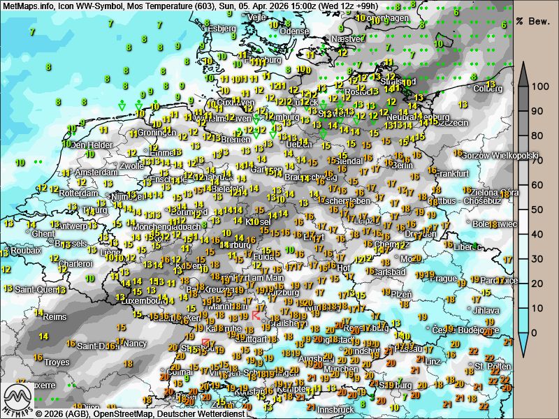 Die Wetter- und Temperaturkarten für Karfreitag, Karsamstag und Ostersonntag (15:00 Uhr) nach ICON:
