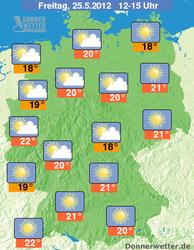 Am Sonntag ziehen dann wahrscheinlich Wolken auf, die aber nach dem jetzigen Stand nur im Südosten und an der Nordsee vereinzelte Schauer bringen. Die Temperaturen steigen am Sonntag auf Werte zwischen 18 Grad an der Ostsee und 24 Grad im Westen. Im Süden und Osten wird es sonnig bei wechselnder Bewölkung und Temperaturen um 21 °C.