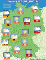 Für Samstag und Sonntag rechnen die Wettermodelle mit hochsommerlichen Temperaturen von Bayern bis Brandenburg. Derzeit sieht es so aus, dass im Westen weiterhin kältere Luft einfließt, die die Temperaturen oftmals unter 20 Grad hält.