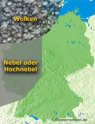 Etwas mehr Glück braucht man im Westen. Hier halten sich am Morgen noch Nebel und Hochnebel. Es ist Glückssache, ob sich diese am jeweiligen Standort schnell genug auflösen, damit man von der Sonnenfinsternis noch etwas sehen kann.