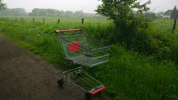 An vielen Orten in Deutschland wird an diesem Wochenende in Stadt und Land aufgeräumt und sauber gemacht. Es ist schon erstaunlich, was für ein Müll an öffentlichen Orten abgeladen wird. Unser einsamer Einkaufswagen auf dem Bild, ist da schon harmlos. Der öffentliche Raum gilt für eine zunehmende Zahl von Menschen als Müllentladeplatz. Von Schmierereien an Hauswänden angefangen, über Kaugummis, zahllose Hundehaufen, Kippen bis hin zu Autoreifen findet sich alles. Wenigstens gibt es für alle, die heute und morgen mithelfen aufzuräumen, gutes sonniges Wetter. Viel Spass und Danke.