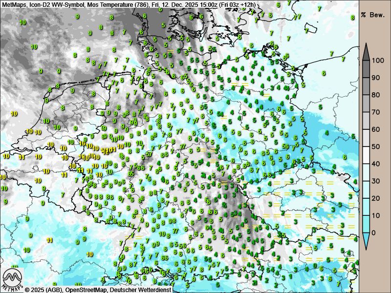 Nachts ist weiterhin an den Alpen und im Erzgebirge mit Nebel und Bodenfrost zu rechnen, sonst bleibt es meist zu mild für Frosttemperaturen.