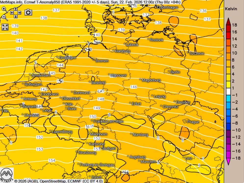 Noch frühlingshafter präsentiert sich die Lage im Südwesten: Dort sind örtlich Temperaturen bis etwa 15 Grad möglich. Unterstützt wird die milde Phase durch eine südwestliche Strömung, die vergleichsweise warme Luftmassen nach Mitteleuropa führt.