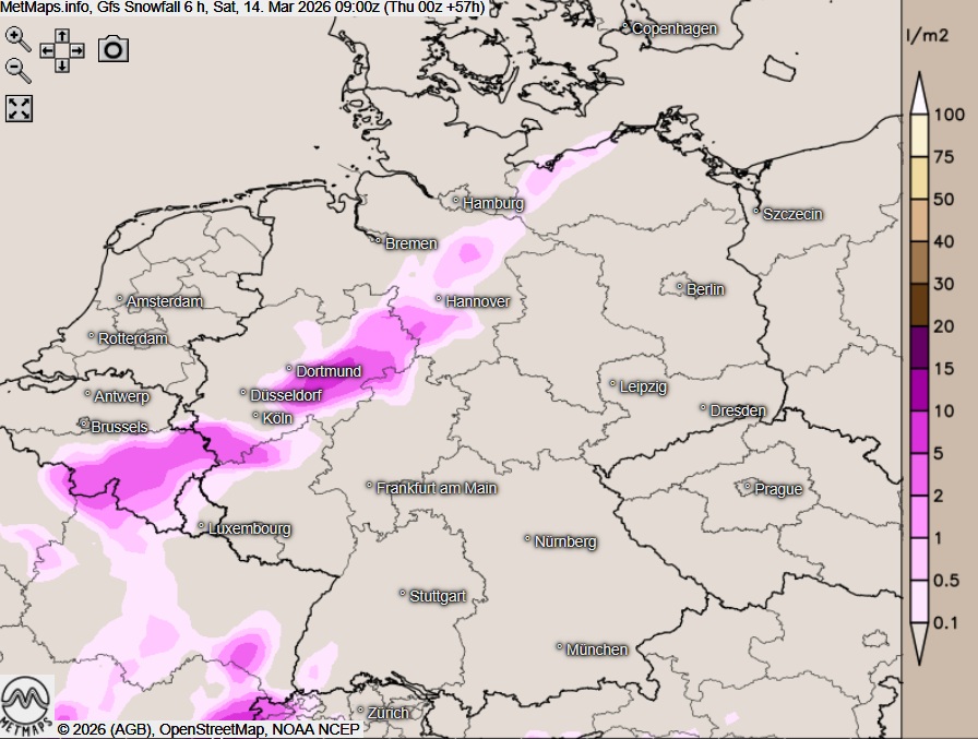 In Nordrhein-Westfalen sorgt eine begleitende Tiefwelle am Samstag zudem für einen Hauch Spätwinter: Neben Schneeregen kann es vor allem in höheren Lagen ab 200 bis 300 m auch zu Schneefall kommen. In den Mittelgebirgen, insbesondere in der Eifel und im Sauerland, können sich bis zu zehn Zentimeter Neuschnee ansammeln.