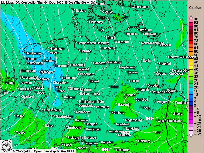 Erst wenn am Wochenende wieder der Jetstream über Europa weht, steigen die Temperaturen überall in Mitteleuropa rasch an.