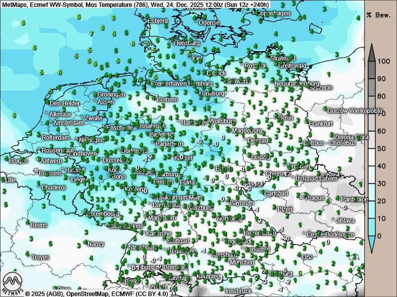 Nach aktuellem Stand zeichnet sich bis zum 24. Dezember ein weitgehend unverändertes Bild ab: Ein stabiles, blockierendes Hochdruckgebiet bestimmt weiterhin das Wettergeschehen über Mitteleuropa. Sowohl die globalen Wettermodelle als auch ihre Ensemble-Rechnungen zeigen bis Heiligabend überwiegend trockene Verhältnisse. Nennenswerte Niederschläge sind nicht in Sicht.
