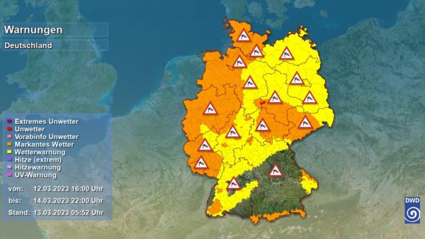 Ein erster Warmluftvorstoß ist am heutigen Montag auch in Deutschland zu spüren: Die Wärmeblase zieht mit einer strammen Südwestströmung über Frankreich nach Norden. Im Rhonetal zwischen Avignon und Lyon können bereits Werte von 23 bis 25 Grad C erreicht werden; hierzlande sind zu Wochenbeginn immerhin Höchstwerte um 20 bis 21 Grad in Karlsruhe, am Kaiserstuhl und in Heidelberg möglich. München und Köln kommen heute Nachmittag auf 18 Grad C, Berlin auf 16 Grad, Hamburg auf 14 Grad.