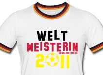 Und natürlich sind wir von unseren deutschen Fußballerinnen überzeugt, die sensationellen Fußball spielen. Und Sie können's jetzt zeigen, mit unseren neuen T-Shirts und Jacken 'Weltmeisterin 2011'. Oder - noch etwas selbstbewusster als 'GerMandy' ;-)