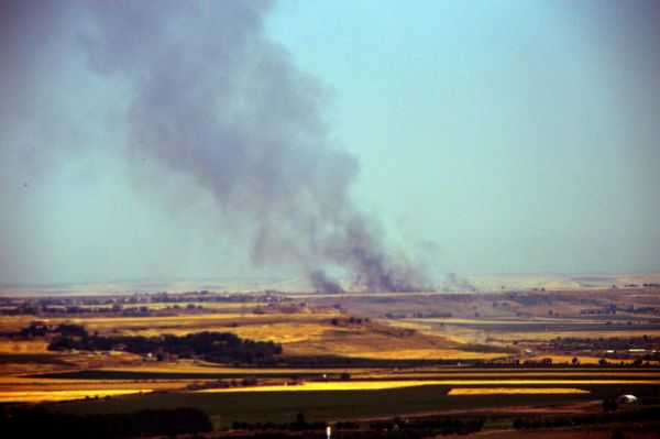 Ausnahmsweise mal keine Kriegsfolge: Schwarze Flächen sind abgebrannte Felder bei Mardin (Türkei) an der Grenze zu Syrien und dem Irak