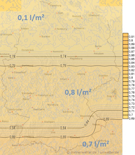 Am Donnerstag stellt sich im Westen und in der Mitte eine leichte Wetterberuhigung mit örtlichen Schauern ein. Im Norden, sowie am Alpenrand fällt jedoch weiterhin Niederschlag, ganz im Norden, sowie in den Bergen teils als Schnee. Die Mengen liegen erneut zwischen 5 und 20 Liter pro Quadratmeter.
