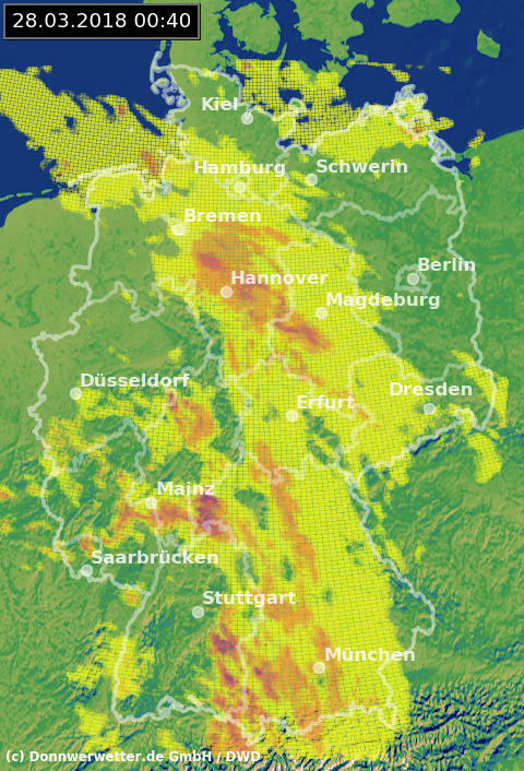 Radarbild von Mittwoch, 28.03.2018 um 00.40 Uhr
