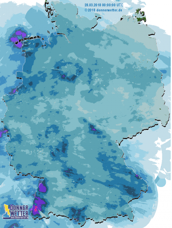 Radarbild von Gründonnerstag, 29.03.2018 um 00.40 Uhr