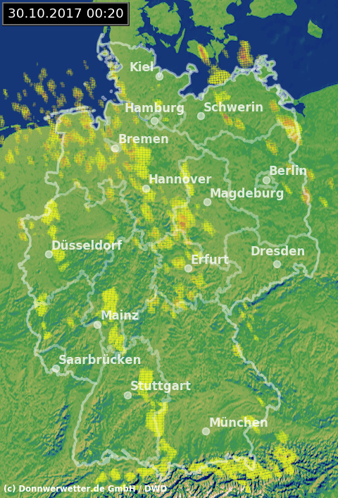 Radarbild von Montag, 30.10.2017 um 00.20 Uhr