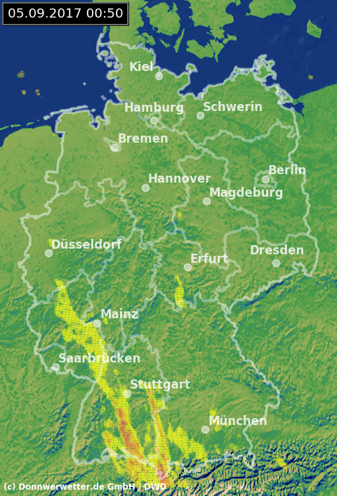 Radarbild von Dienstag, 05.09.2017 um 00.50 Uhr