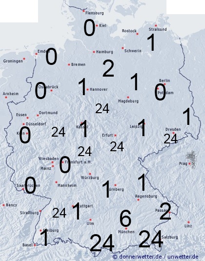 Die Benetzungsdauerkarte liegt bei einer vorhandenen Schneedecke in den Mittelgebirgen und am Alpenrand bei 24 Stunden. Außerdem fällt an den Alpen zum Teil noch Schnee. Sonst gibt es in Deutschland meist nur leichte Benetzung durch nächtlichen Strahlungstau, beziehungsweise Reif.