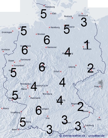 Von Westen ziehen im Tagesverlauf Schauer und Gewitter auf und sorgen für eine Benetzungsdauer von meist 4 bis 6 Stunden. Ganz im Osten, sowie in Teilen Bayerns bleibt es bis zum Abend trocken. Hier entsteht leichte Benetzung durch nächtlichen Strahlungstau.