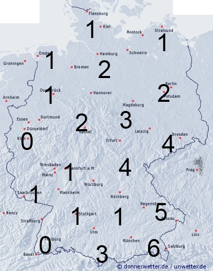 Örtliche Schauer, die vor allem in Teilen des Ostens, sowie in Südostbayern auftreten können sorgen für eine Benetzung von 2 bis 6 Stunden. Sonst entsteht nur leichte Benetzung durch nächtlichen Strahlungstau.
