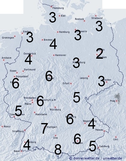 In Deutschland fällt gebietsweise Regen oder es treten Schauer auf. Sonst entsteht Benetzung durch nächtlichen Strahlungstau. Die Benetzungsdauer liegt allgemein zwischen 2 und 8 Stunden. In freier Natur können Gras und Wiesen aber auch deutlich länger von Feuchtigkeit benetzt sein.
