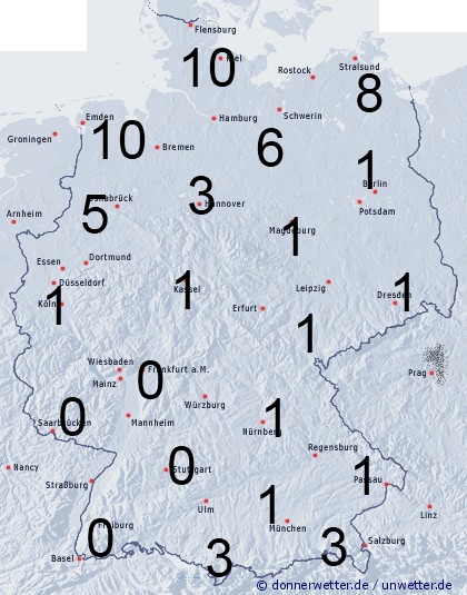Der Norden und Nordwesten wird von einer Regenzone erfasst. In Folgedessen steigt hier die Benetzungszeit auf 5 und 10 Stunden. Sonst entsteht nur durch nächtlichen Strahlungstau oder Reif leichte Benetzung.